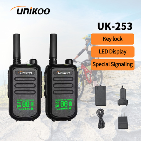 UNIKOO-Miniwalkie talkie de mano GMRS UK253, 2 unidades, carga tipo C, juego de comunicación de largo alcance, IPX5, resistencia al agua, VOX